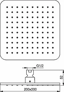 IDEALRAIN CUBE M1 Верхний душ 200x200 мм, 1-функциональный, плоский, металлический (латунь), легкоочищаемый, шарнирное соединение, ограничение потока - макс. 12 л/мин