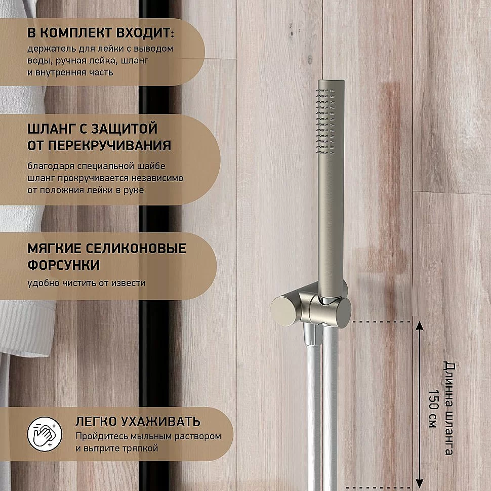 • В комплект входит держатель для лейки с выводом воды и ручная лейка и шланг.