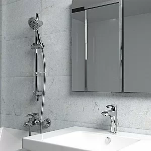 Корпус штанги из нержавеющей стали с технологией двойного покрытия (никелирование + хромирование) устойчив к известковому налету и царапинам. Никакого скопления бактерий и блеск 24х7.