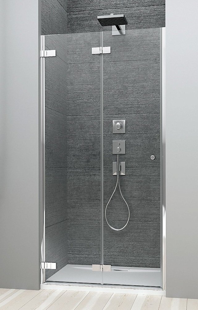 Arta DWB — складывающаяся дверь в нишу. Дверь складывается по середине внутрь душевой зоны, стекло ближе стены поворачивается внутрь и наружу.