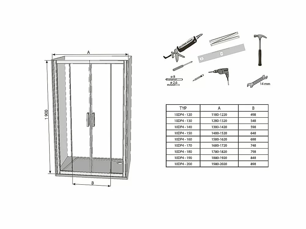 Душевая дверь Ravak 10° состоит из двух неподвижных частей и двух подвижных, раздвижных. Устанавливается в облицованную кафелем ванную комнату (в нишу) на поддоны или непосредственно на пол со встроенным душевым каналом или трапом.