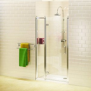 Душевая дверь Ravak Glassline состоит из трех прямых частей: поворотной двери и двух неподвижных стенок.  Устанавливается в облицованную кафелем ванную комнату (в нишу) на поддоны или непосредственно на пол со встроенным душевым каналом или трапом.