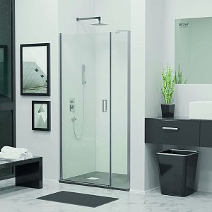 Душевая дверь с закаленным прозрачным стеклом 6 мм, с роликовым механизмом оснащенные автодоводчиком. Поддон приобретается отдельно.