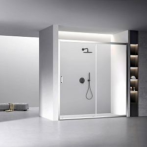 Душевая дверь раздвижная на роликах. В комплекте нижняя пороговая планка. Магнитный уплотнитель двери. Трап или поддон приобретается отдельно.