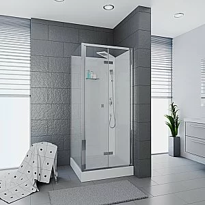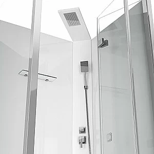 Душевая кабина Ceruttispa Bella 90T без крыши. Размер: 90х90х215-225 см. Достоинства: Закаленное стекло 6 мм. Ударопрочное полотно способно выдержать случайные удары. В случае битья, стекло рассыпается на мелкие куски с тупыми гранями, о которые невозможно пораниться. Задняя стенка из закаленного стекла в цвете Extra White. Пристенные профили выполнены из алюминия, нижние и верхний – из чистой стали. Верхний душ с регулировкой падения воды и регулировкой высоты до 10 см. Дизайнерская ручная лейка. Складная дверь из 2-х частей экономит место в санузле. Дверь закрывается плотно, не дает воде просочиться наружу. Петли и ручки из чистой стали не подвержены коррозии. Собирать модель можно вариативно, меняя открывание дверей, неподвижные и подвижные стекла местами. Гарантия 1 год.