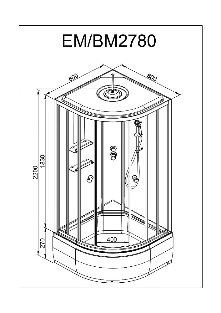 Душевая кабина DTO EM2780EL 80х80 с электрикой