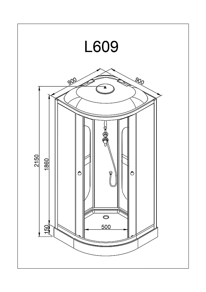 Душевая кабина DTO L 609 с LED подсветкой (90x90х215)