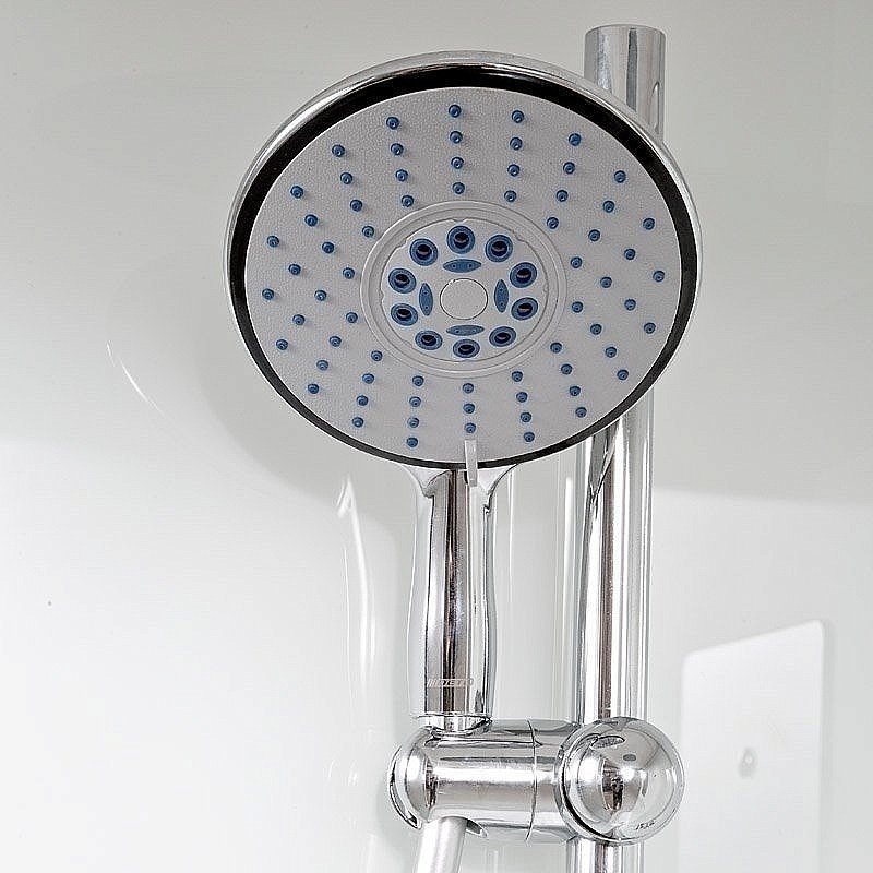 Душевая штанга с регулировкой лейки по высоте и ручная лейка с силиконовыми форсунками диаметром 140 мм с функцией переключения режимов