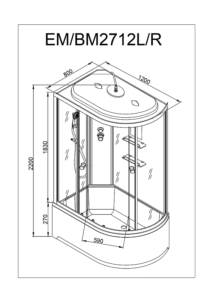 Душевая кабина DTO Серия ЕМ ЕМ2712 стандартная 120x80