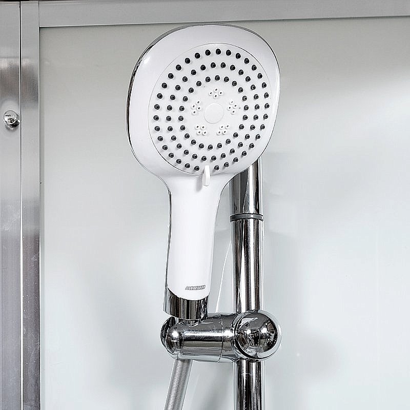 Душевая штанга с регулировкой лейки по высоте и ручная лейка с силиконовыми форсунками с функцией переключения режимов