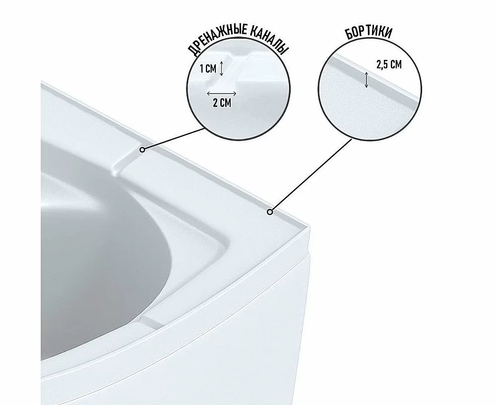 Поддон акриловый, усиленный с бортиками и дренажными каналами; Чаша поддона установлена на металлический каркас, с регулируемыми ножками. Нагрузка на поддон до 300 кг.