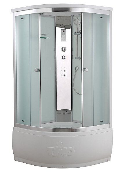 Комплектация: сенсорная панель управления,FM радио, подсветка верхняя, электр. вентиляция; стеклянная полочка; термастатический четырехрежимный смеситель, гидромассаж спины; тропический душ; каскадный душ; ручная лейка с шлангом из ПВX; регулируемая по высоте штанга из нержающей стали.