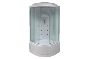 Акриловый поддон h - 42 см; Съемный экран; Сливная система clik-clak с сифоном; Алюминиевый профиль - белый матовый; Задние стенки - стеклянные белые; Передние стекла - структурные матовые; Смеситель однорычажный - 2 режима; Тропический душ; Массажная лейка; Стеклянная полочка; Зеркало; Ручки.