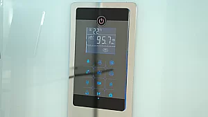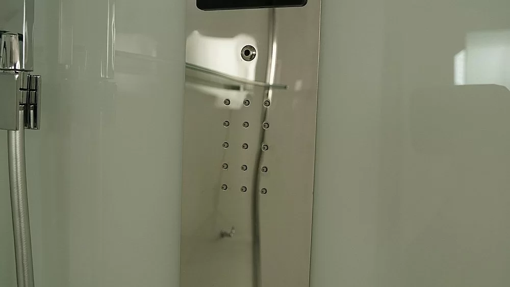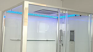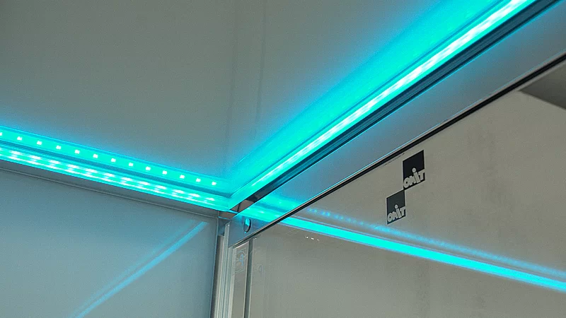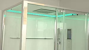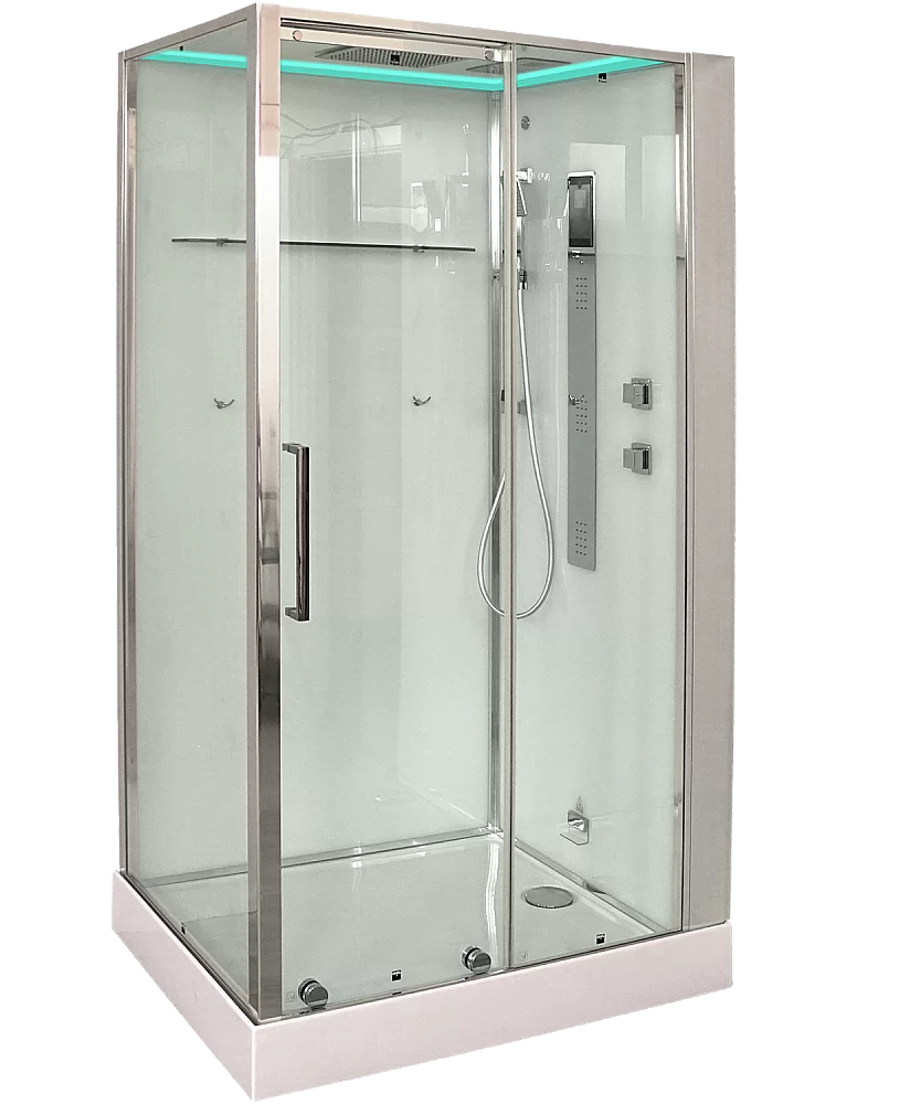 Стеклянные задние стенки супербелого оттенка толщина 6 мм., Расдвижная дверь толщиной 8 мм.