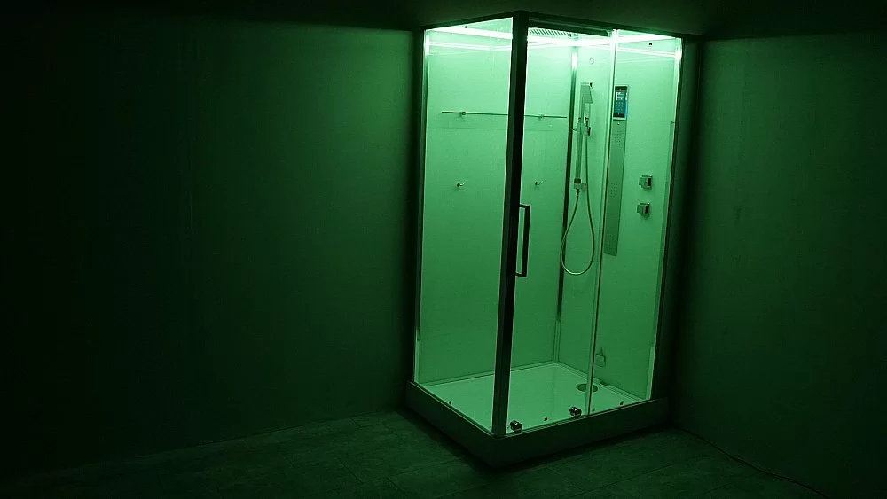 Стеклянная крыша. Тропический душ из нержавеющей стали.