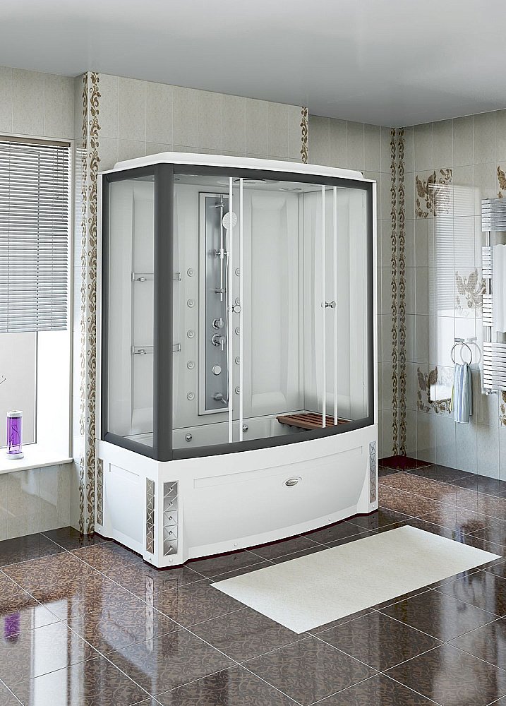 Душевой бокс Радомир Элис 160х85 стекло прозрачное/профиль черный