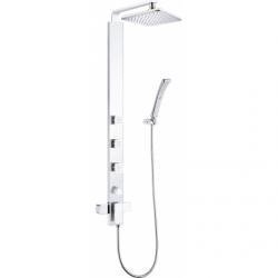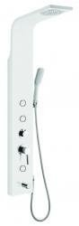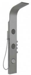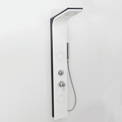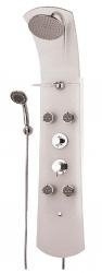 В комплект стандартной модели душевой гидромассажной панели входят корпус, несколько душевых насадок, смеситель, излив или термостат, массажные форсунки и пульт управления режимом. В некоторых моделях вмонтированы сиденье или массаж для ног. Внутри корпуса находится развилка для потока воды на верхний душ, ручную лейку и гидромассажные форсунки. Массажные форсунки располагаются вдоль важных линий тела. В зависимости от типа воздействия, они классифицируются на вращающиеся по кругу, дающие плоскую или точечную струи, пульсирующие и подражающие акупрессуре. Существуют модели гидромассажных панелей со встроенной системой «тропического» душа.