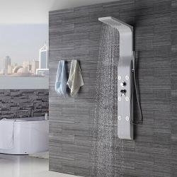 Панель управления может быть ручной или электронной. Электронные панели имеют множество функций: установка температуры воды, подсветка, попеременное включение разных групп форсунок или разной температуры. В новейших моделях можно даже звонить или слушать радио. На электронной панели управления в отличие от ручной комбинируются различные режимы водного массажа и можно создавать свой уникальный порядок водной процедуры. Гидромассажные душевые панели выпускаются в угловом, настенном или универсальном исполнении.