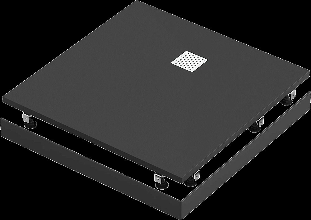 Ультраплоский душевой поддон изготовлен из композита – полиэфирной смолы и минералов. Производственный процесс включает наполнение смеси красителями на стадии смешивания с защитным покрытием Gel Coat, которое придает поддону такие свойства, как прочность и упругость, а также сопротивление скольжению и устойчивость к бактериям.