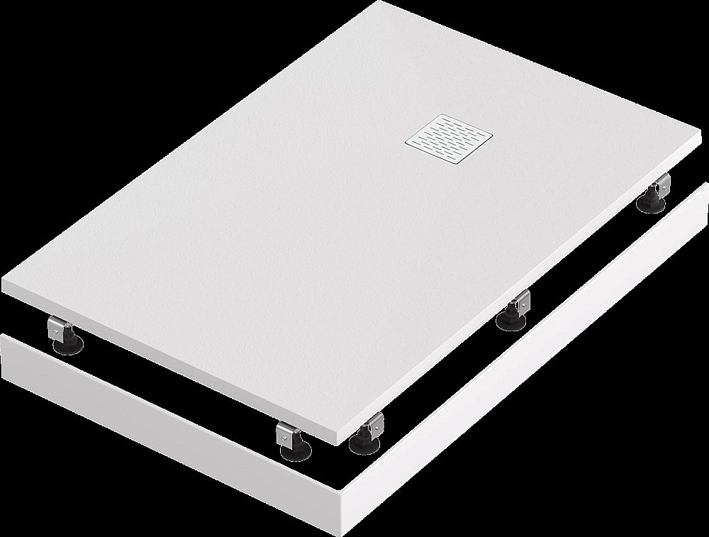 Ультраплоский душевой поддон изготовлен из композита – полиэфирной смолы и минералов. Производственный процесс включает наполнение смеси красителями на стадии смешивания с защитным покрытием Gel Coat, которое придает поддону такие свойства, как прочность и упругость, а также сопротивление скольжению и устойчивость к бактериям.