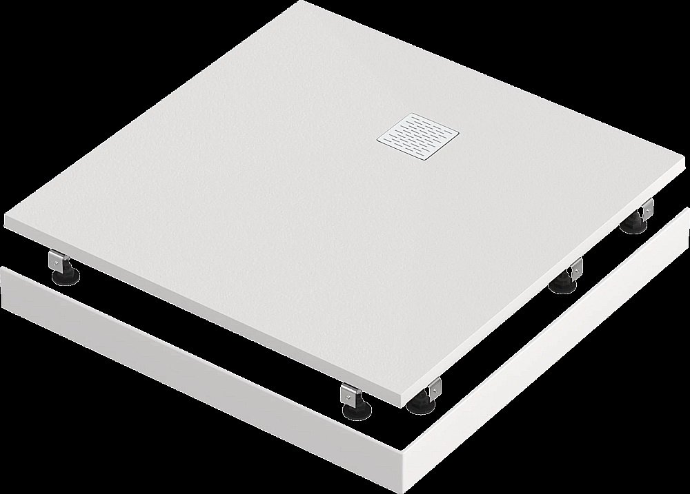 • Ультраплоский поддон изготовлен из композита – полиэфирной смолы и минералов. Производственный процесс включает наполнение смеси красителями на стадии смешивания с защитным покрытием Gel Coat, которое придает поддону такие свойства, как прочность и упругость, а также сопротивление скольжению и устойчивость к бактериям.