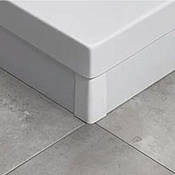 Плоский квадратный акриловый поддон с ножками и со съемной панелью (из белого акрила или из алюминия), приспособленный под сифон с квадратной крышкой, с отверстием Ø90мм, предназначенный для монтажа непосредственно на полу. Рекомендуемый сифон R 399.