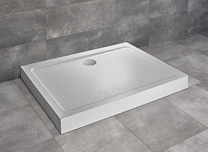 Низкий поддон из литьевого камня для монтажа непосредственно на пол. Форма: прямоугольник. Комплект ножек приобретается отдельно (товарный код: NB003-M8) — высота ножек 100-130мм. Отверстие под сифон Ø 90 мм по середине короткого бока. Рекомендуемый сифон: TB90, TB21, R500, R400 Slim.