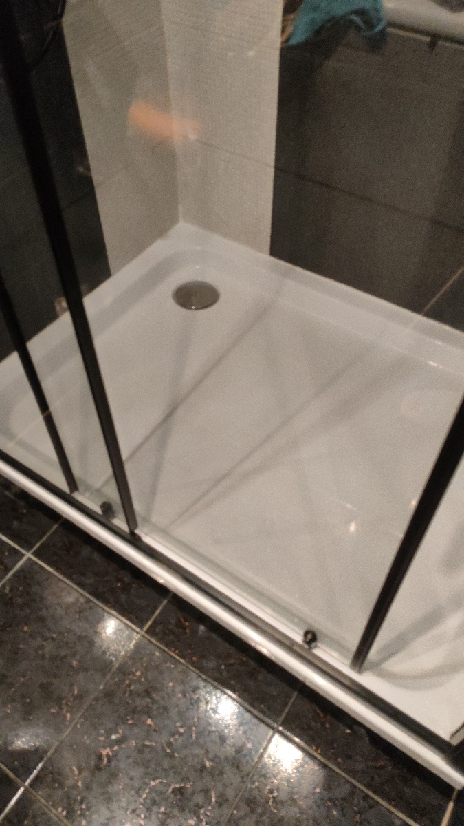 Поддон понравился, лаконичный по дизайну, гладкий, очень твердый, не гуляет, не прогибается. Большой слив Муж установил без особых проблем. Защищён пленкой, что важно, если после установки, продолжается ремонт.