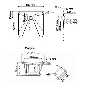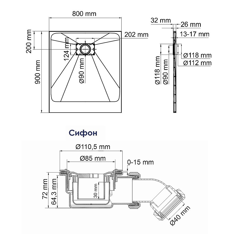 Сифон в поддоне имеет гидрозатвор, препятствующий появлению неприятных запахов из канализации.