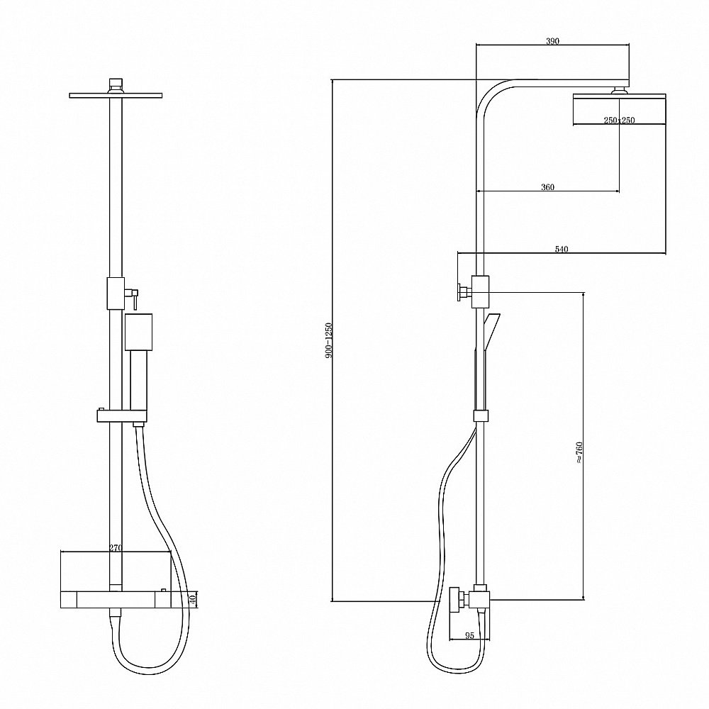 • Размер верхнего душа, мм: 250х250.