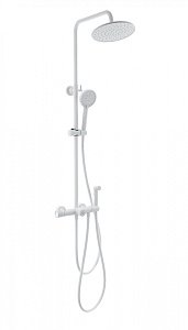 Душевая панель Aquanet SF1706LW включает в себя длинную стойку, которая закреплена на массивной платформе, а в верхней ее части установлен квадратной формы душ, имитирующий тропический дождь. Такая функция особенно приятна для тела, так как теплые струи воды словно обнимают тело,оказывая релаксирующий эффект. Панель, выполненная в стильном белом цвете, оснащена смесителем с термостатом, что позволяет включать воду без риска обжечься, так как температуру и напор воды можно запрограммировать заранее. Термостат заключен в массивный хромированный плоский блок, который соединен с двухуровневой полочкой, на которой можно разместить не только пеномоющие средства, но много необходимых мелочей, которые удобно иметь под рукой во время принятия душа. Здесь найдется место в том числе и для размещения высоких емкостей, так как предусмотрено ограждение. Забота об удобстве создателей панели выражается даже в мелочах - например, в маленьких крючочках с двух сторон от блока с термостатом и полочкой, на которые так удобно повесить мочалки. В комплект входит душевая лейка ручного душа с надежным длинным шлангом и держателем, который закреплен на душевой стойке, поэтому дополнительного отверстия в стене делать не придется.