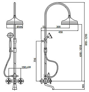 • Оснащение: душевая лейка, шланг для душа, держатель душа настенный, смеситель для ванны