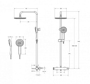 Душевая стойка со смесителем, верхним и ручным душем