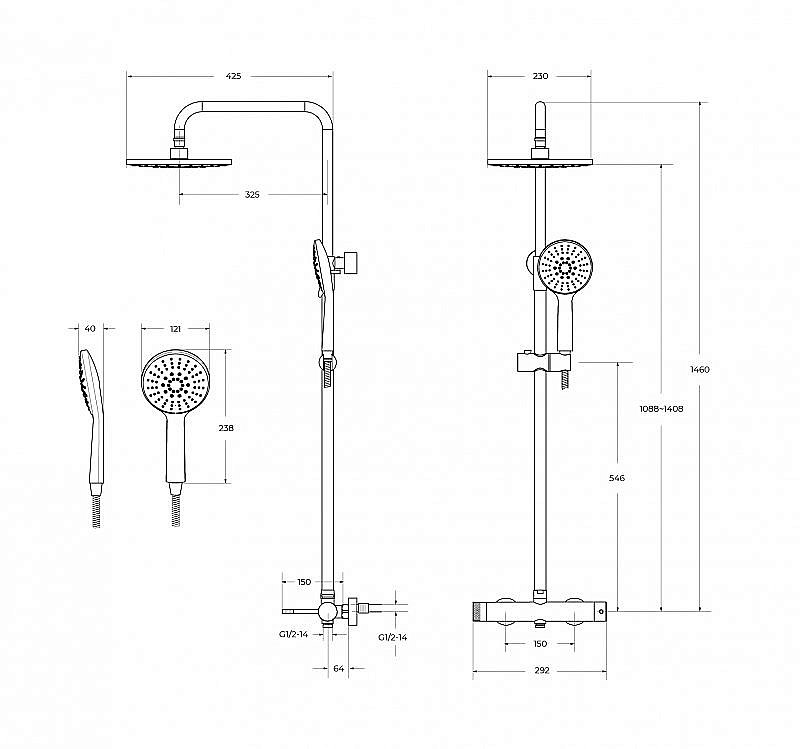 Дополнительная информация: регулируемая высота верхнего душа