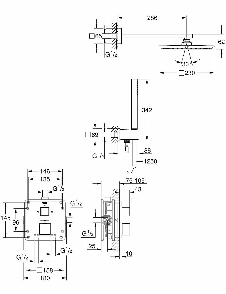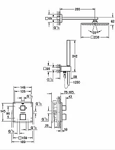 Набор для комплектации душа GROHE Grohtherm Cube: термостат, верхний душ, душевой кронштейн, ручной душ, душевой шланг, хром