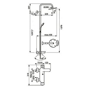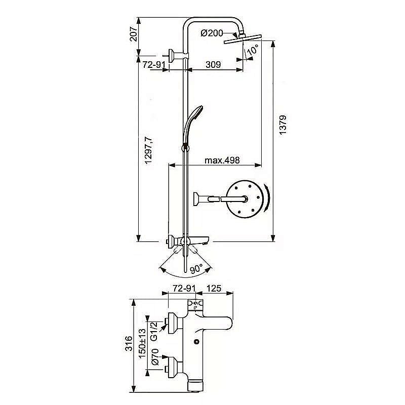 • пластиковый верхний душ - 200 мм, шаровое соединение