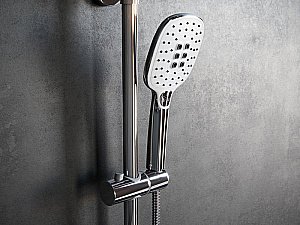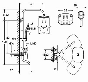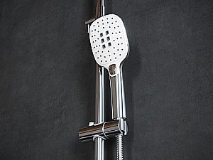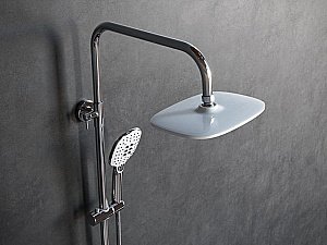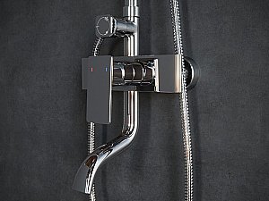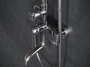Технические характеристики: Управление - рычаговое Материал - латунь Размер верхнего душа, см 26 Размер лейки, см 10 Вылет верхнего душа, см 40 Количество режимов струи - 1 Длина шланга, см 150 Исполнение шланга - металлический Стандарт подводки -1/2" Вращение излива - поворотный Высота, см - 142 Ширина, см - 22 Глубина, см - 49,5 Механизм - керамический картридж Расположение рычага -посередине Область применения - бытовая Гарантия - 5 лет Внешние свойства: Цвет - хром Поверхность - глянцевая Стилистика дизайна - современный стиль Форма - круглая Форма излива вниз Функции: Смеситель - есть Ручной душ - есть (3 режима) Верхний душ - есть (1 режим) Излив для наполнения ванн - есть Дополнительные функции - регулировка по высоте