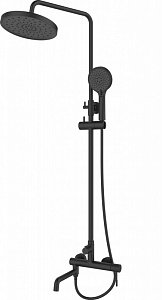 Технические характеристики: Управление - рычаговое Материал - латунь Размер верхнего душа, см 23 Размер лейки, см 10 Вылет верхнего душа, см 36 Длина шланга, см 150 Исполнение шланга - резиновый Стандарт подводки -1/2" Вращение излива - поворотный Высота, см 111-145 Ширина, см - 17,5 Глубина, см - 47,5 Механизм - керамический картридж Расположение рычага - посередине Область применения - бытовая Гарантия - 5 лет Внешние свойства: Цвет - черный Поверхность - матовая Стилистика дизайна - современный стиль Форма - круглая Форма излива вниз Функции: Смеситель - есть Ручной душ - есть (3 режима) Верхний душ - есть (1 режим) Излив для наполнения ванн - есть Дополнительные функции - регулировка по высоте