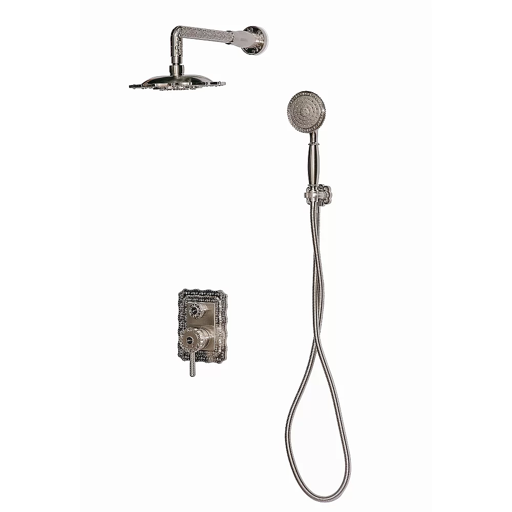 Душевая система скрытого монтажа Milacio имеет сложные декорированные элементы, которые придают общему дизайну ванной комнаты эксклюзивность, индивидуальность, изысканность. Старинный метод литья, тщательная проработка граней и рельефных рисунков на корпусе изделия и их полировка. Фигурные элементы и гравировку на корпусе мастера выполняют вручную, делая каждое изделие уникальным.