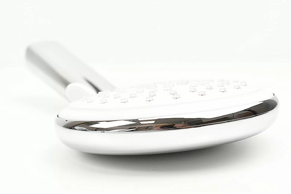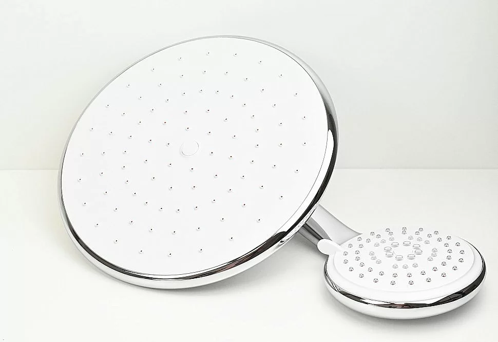 Душевая система RS White от итальянского бренда PAINI обладает инновационной системой самоочистки верхнего душа и ручной лейки. Специальные форсунки очищают отверстия в лейке при переключении режима, а верхний душ очищается, как только включается напор воды.