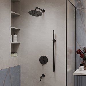 • Головной душ из высокопрочного ABS-пластика оснащён со шарнирным креплением, что позволяет выбрать необходимый угол направления воды;