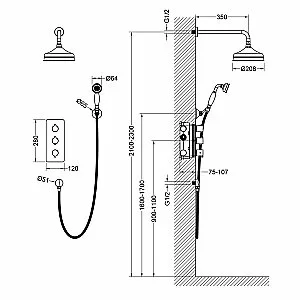• Тип душевой системы: 3-х режимная • Смеситель: термостат • Размер лейки верхнего душа: 20.8 см в диаметре • Форма лейки верхнего душа: круглая • Ручной душ • Шланг душа гибкий 1,5 м • Цвет: бронза • Материал: латунь, пластик Комплектация: • Смеситель с монтажной коробкой, скрытого монтажа, с термостатом - 1 шт. • Штанга тропического душа с декоративным отражателем - 1 шт. • Тропический душ (латунный) - 1 шт. • Ручная лейка (латунная) - 1 шт. • Держатель ручной лейки (латунь) - 1 шт. • Декоративная накладка смесителя (латунная) - 1 шт. • Ручка дивертора - 1 шт. • Ручка управления термостатом - 1 шт. • Ручка переключения в режим "ручной душ" - 1 шт. • Шланг душа 1,5 м - 1 шт. • Отвод из стены - 1 шт. • Инструкция - 1 шт. Гарантия: 5 лет.