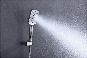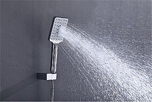 Встроенный потолочный душ большого размера создает имитацию проливного дождя, вода обливает человека целиком. Регулируя напор воды можно получить массажное воздействие, что очень полезно для здоровья. Использовать такой смеситель очень удобно, регулировка напора и температуры воды осуществляется одним рычагом. Переключение режимов "тропический душ" и "ручной душ" осуществляется поворотом ручки дивертора.