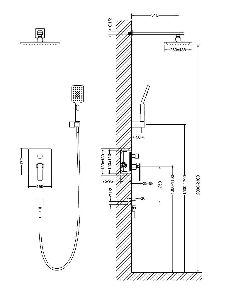 Встраиваемая душевая система Torne 4319, предназначена для монтажа в полой или твердой стене. Основные преимущества встроенной системы: коммуникации, крепления и механизмы спрятаны в стену и видны только декоративные элементы. Установить встроенную систему можно в любом месте. Использовать такой смеситель очень удобно, регулировка температуры и напора воды осуществляется одним рычагом.