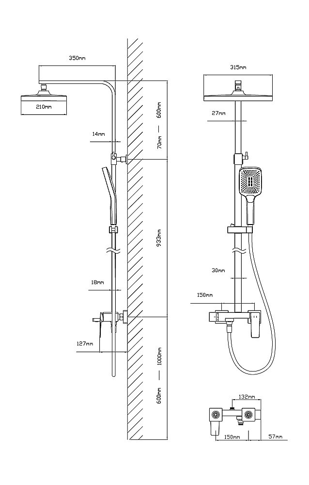 Размер верхнего душа, мм: 315×210