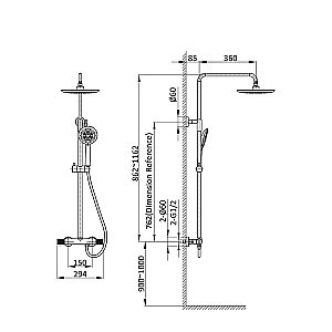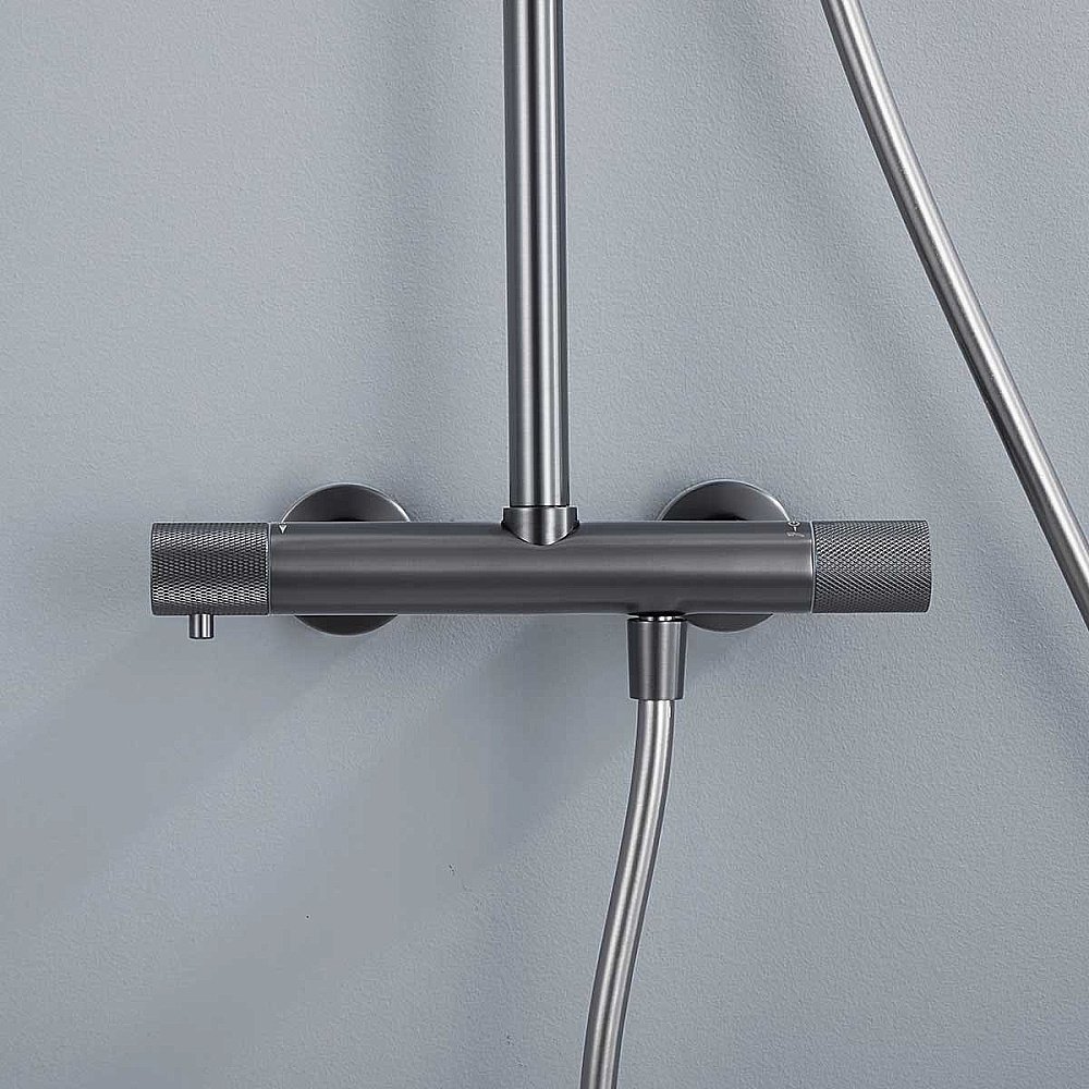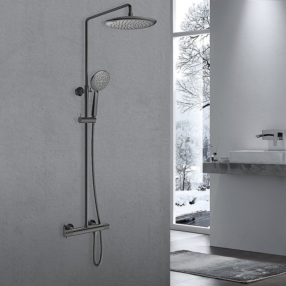 В комплекте: верхний душ, душевая лейка, смеситель, термостатический картридж Vernet, девиатор, душевой шланг 150 см