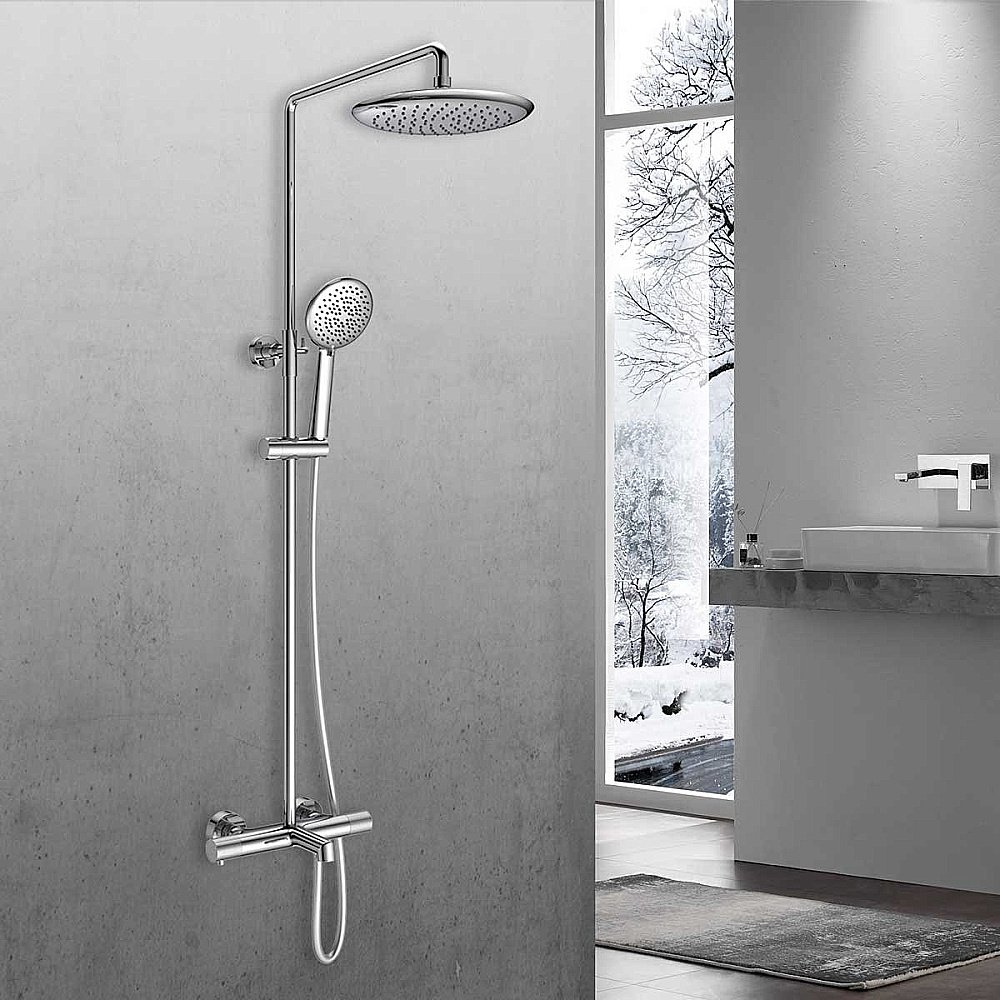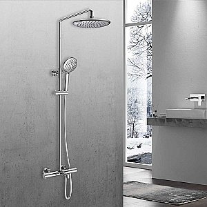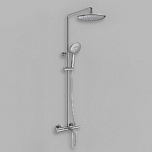 В комплекте: верхний душ, душевая лейка, смеситель, термостатический картридж Vernet, девиатор, душевой шланг 150 см