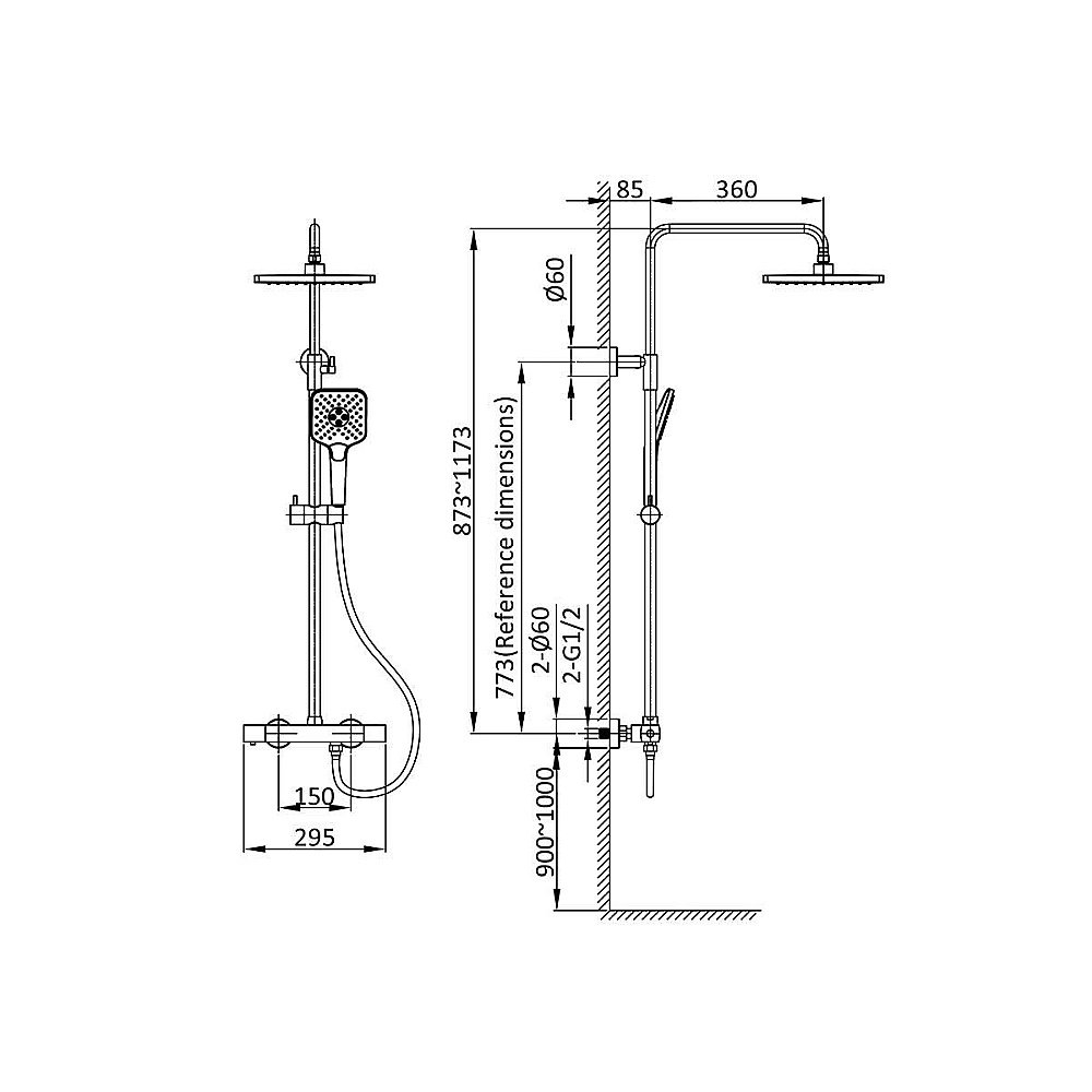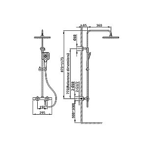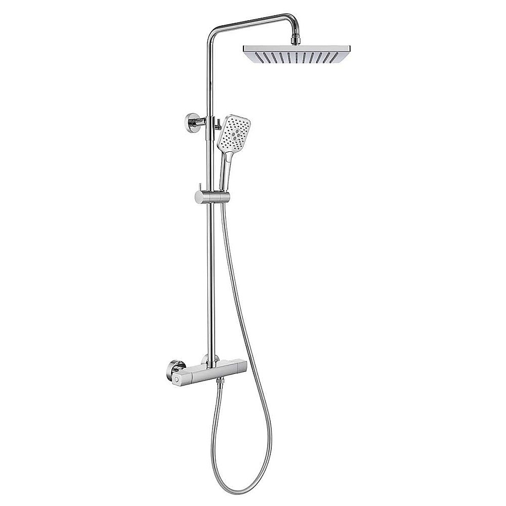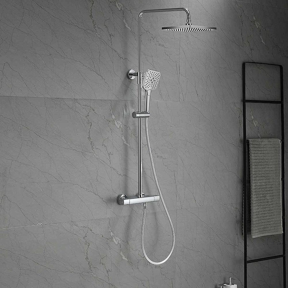 В комплекте: верхний душ, душевая лейка, смеситель, термостатический картридж Vernet, девиатор, душевой шланг 150 см