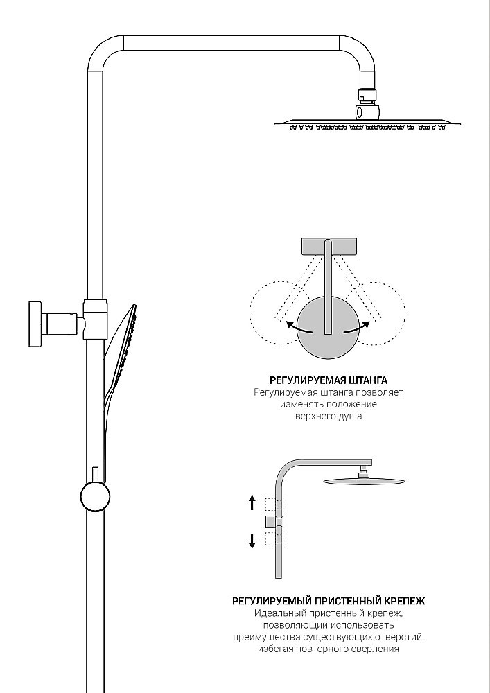 • Трехрежимная душевая лейка.