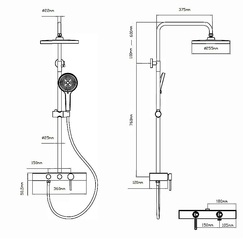 Размер верхнего душа, мм: 255